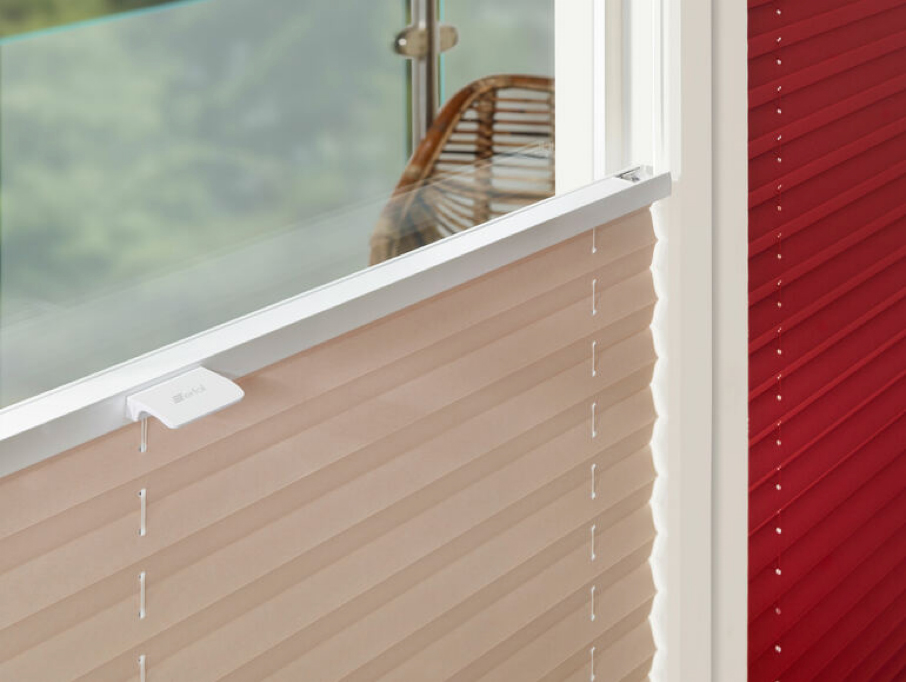 Die Plissees können wie ein Ziehharmonika auf ein schmales Paket zusammen- oder auseinandergeschoben werden, sodass sie das Fenster teilweise oder vollständig bedecken.